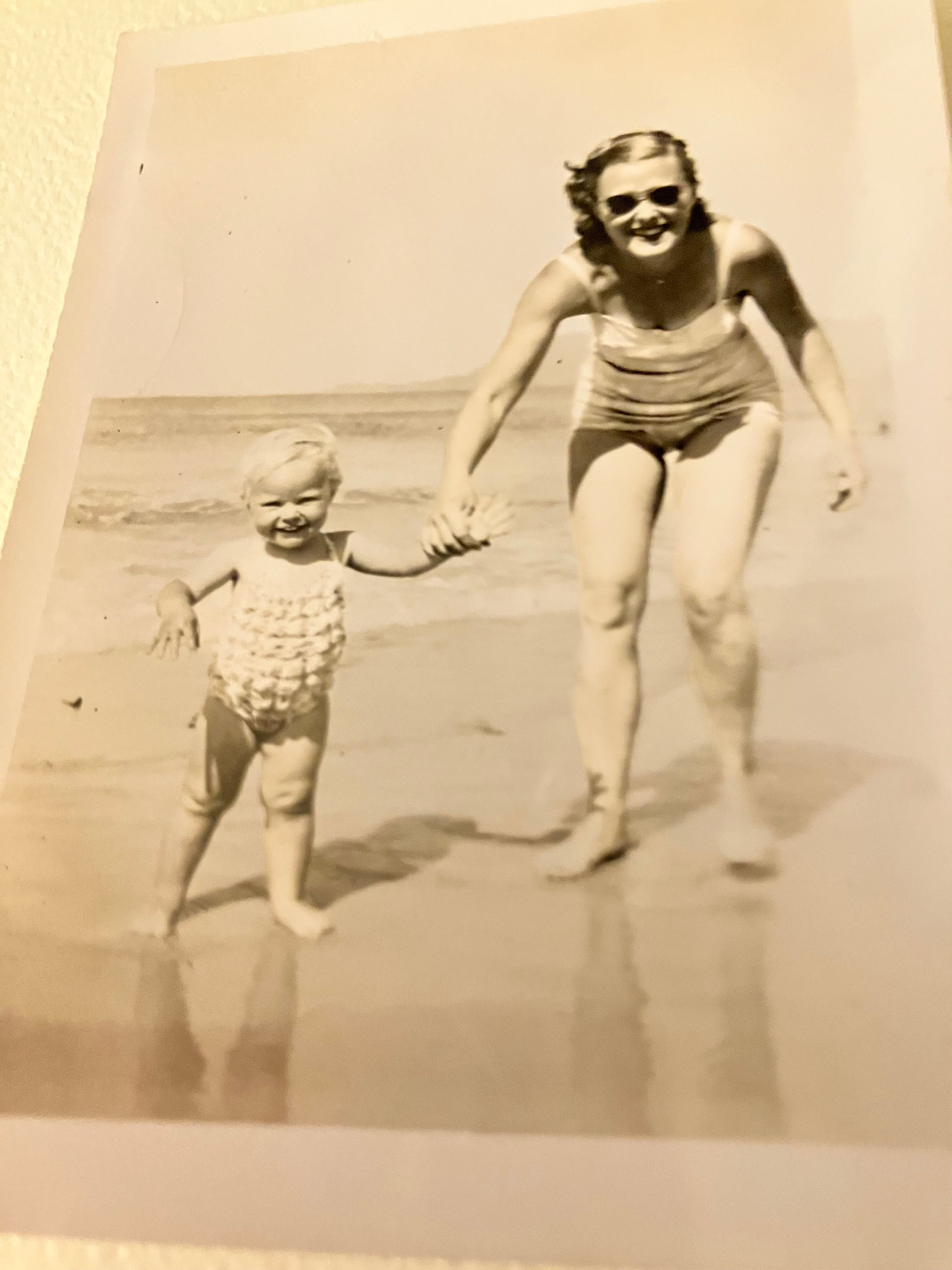 I was asked recently why I love the sea so much and I answered that it’s my lifeblood. This image I found may explain it more eloquently. My darling Mum and I on the beach that I walk every day.