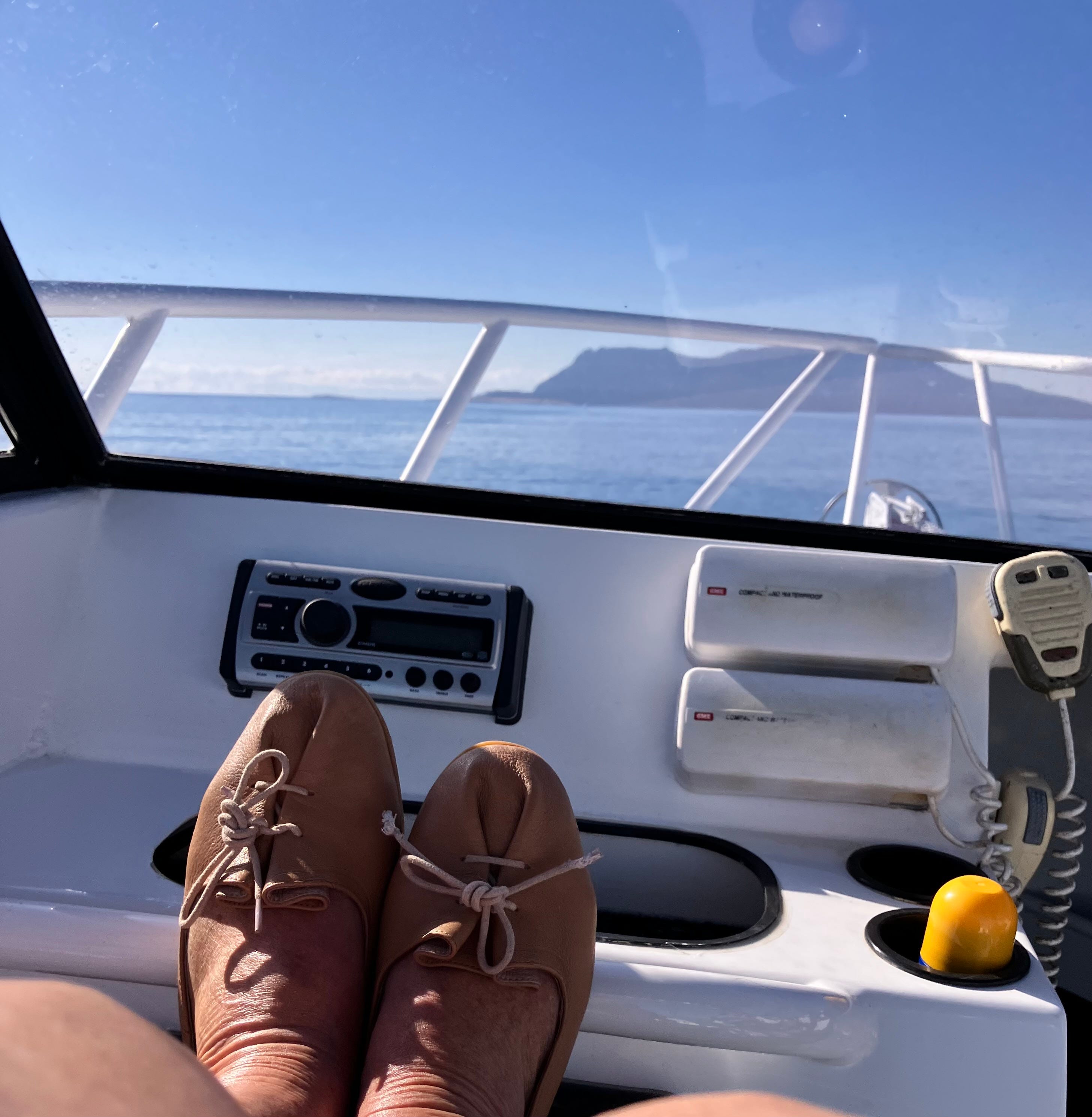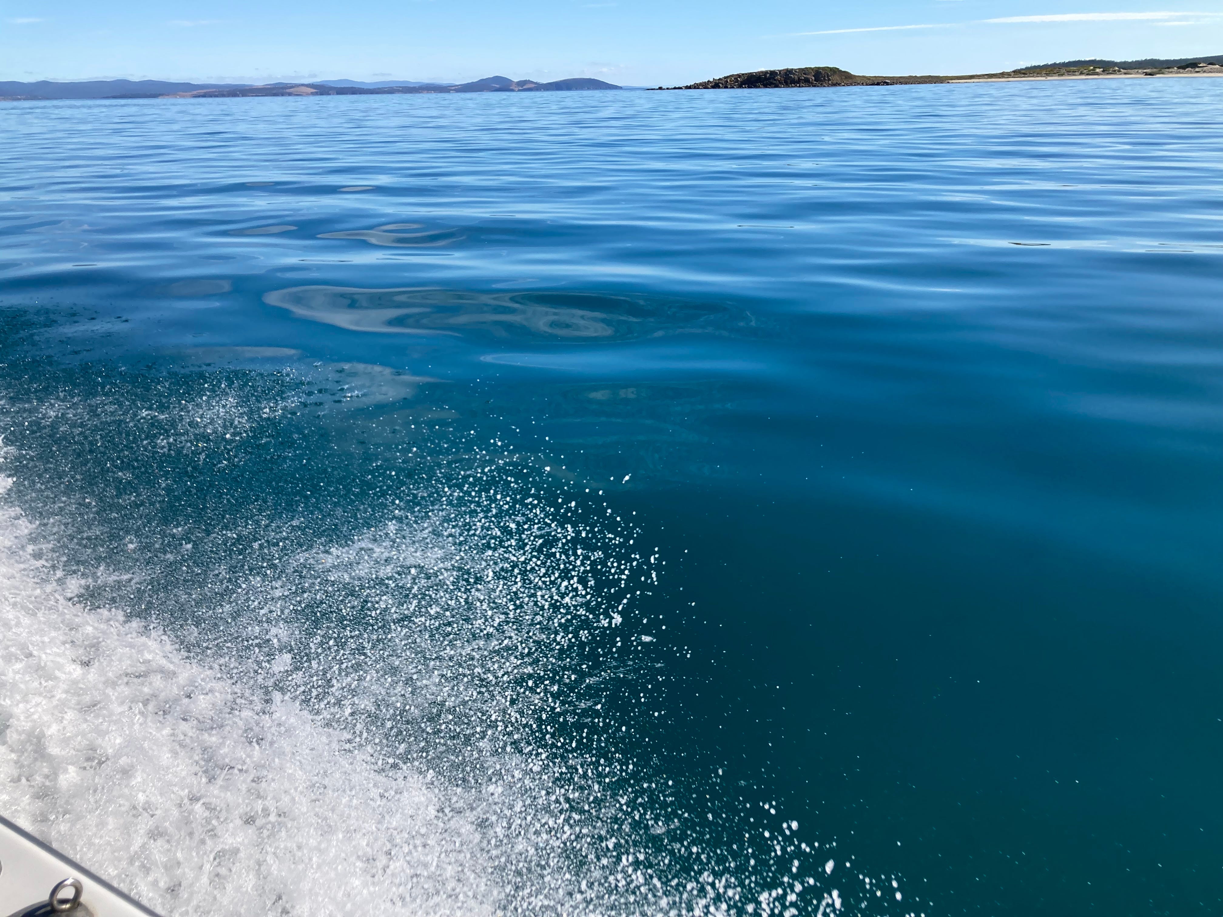 A day where the weather gods are allowing me to go boating without three days of vertigo to follow. Light and variable winds, very little swell. So we load up Olympian with a picnic, with two dry bags filled with swimming gear and pootle to Maria Island.