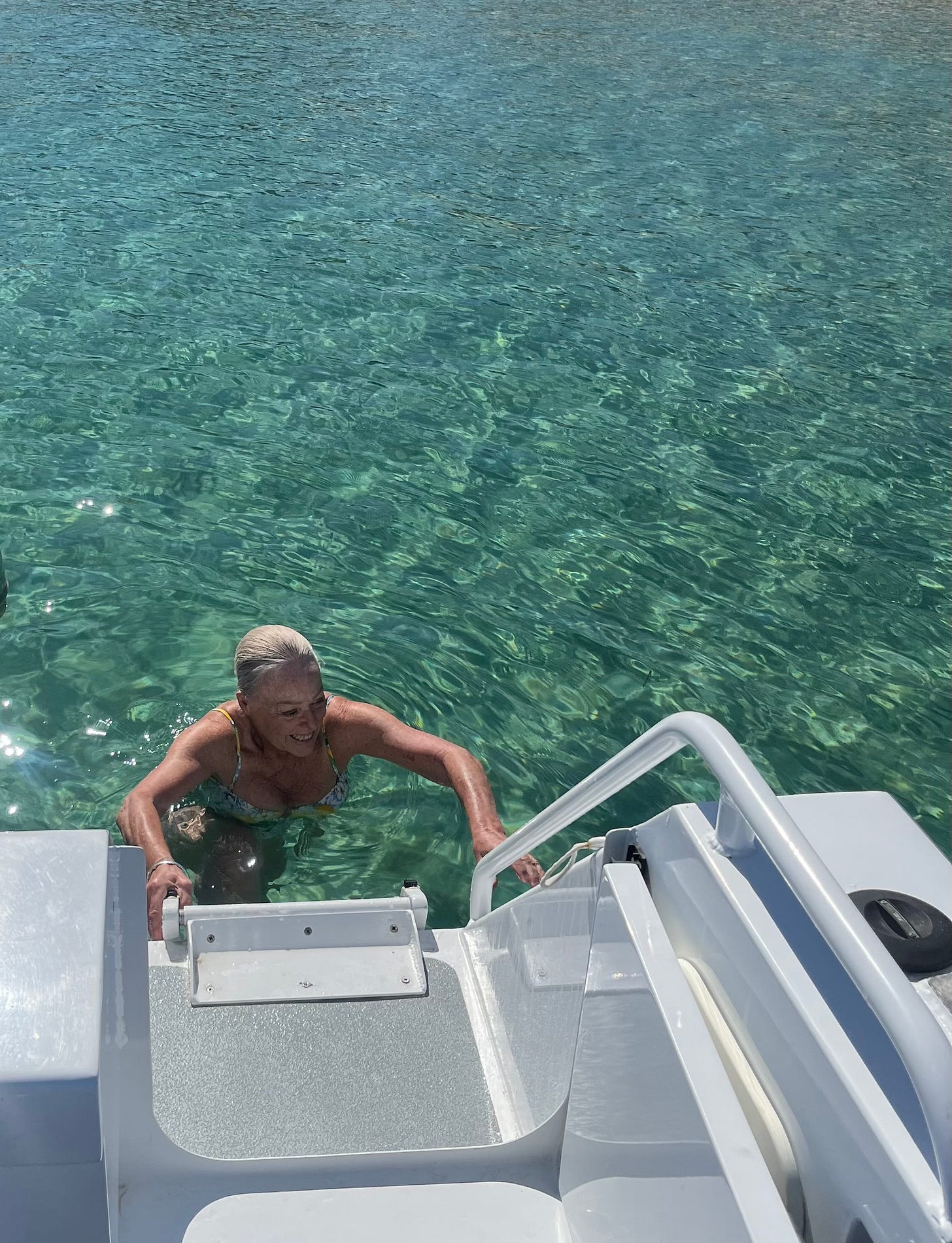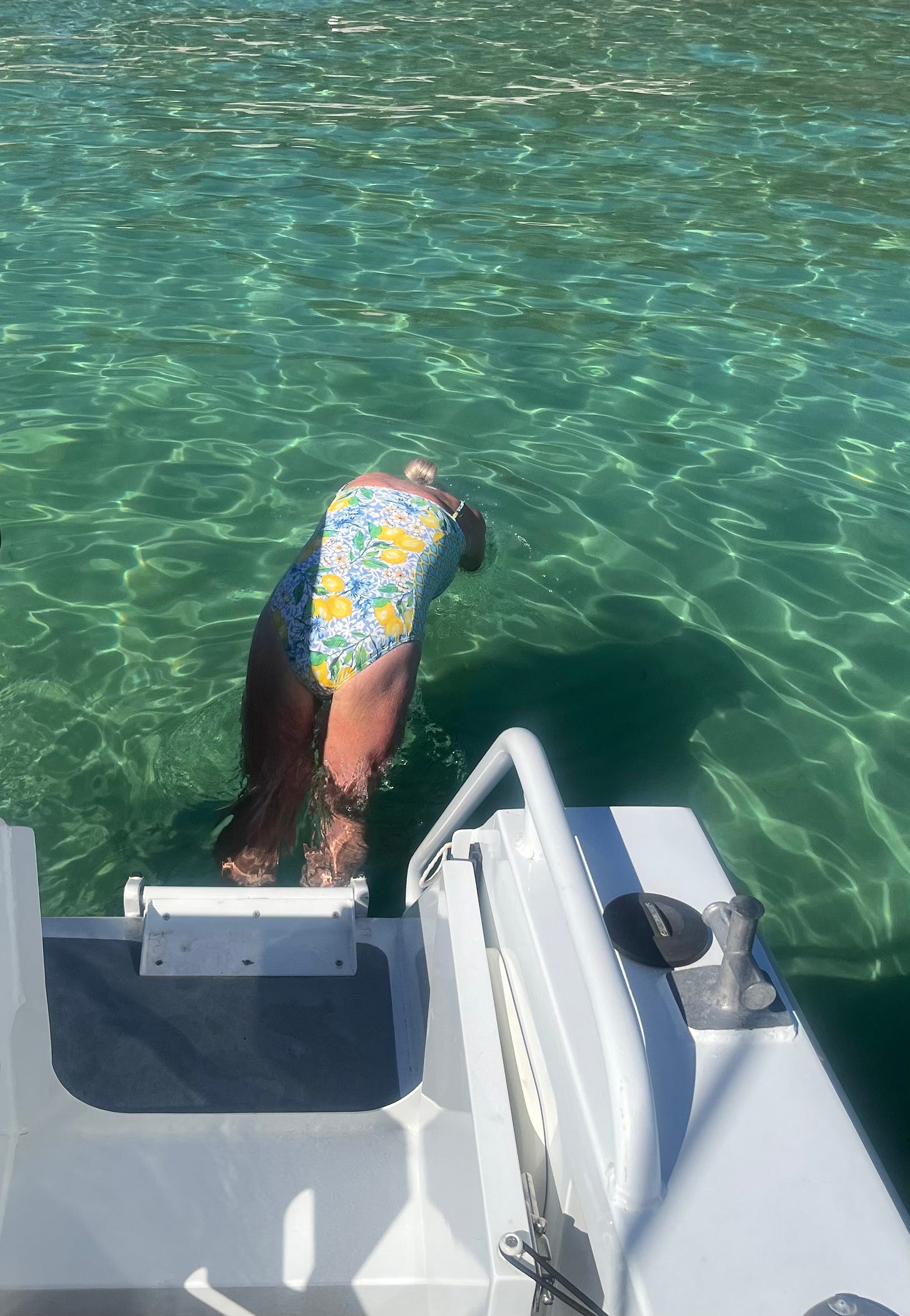 I turn back toward the boat and my husband dives in.
