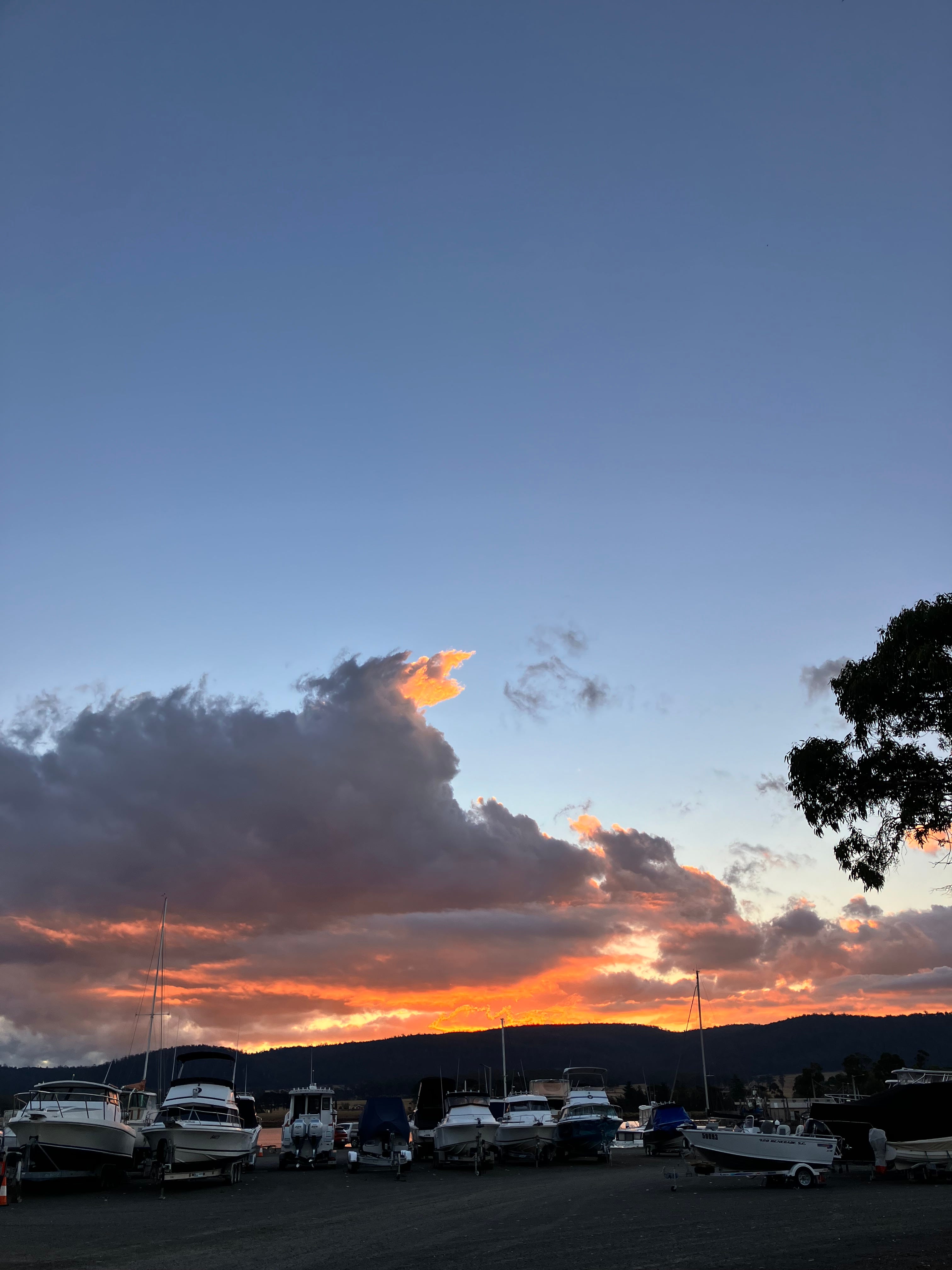 At dusk, we return the boat all rubbed, tubbed and with its navy covers pulled down tight, to the boatclub, where I watch the sun setting on a perfect day.