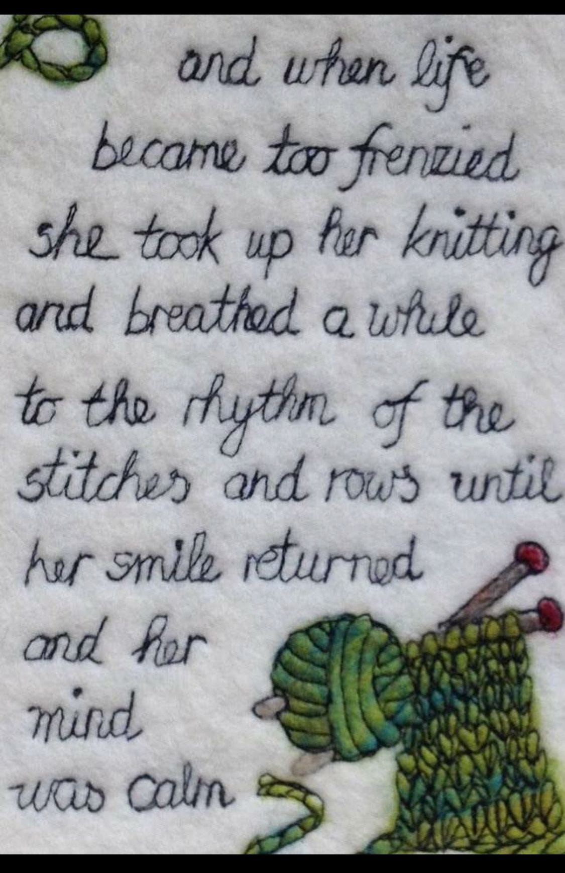 Take up a knitting needles, a crochet hook, a needle and embroidery thread. Cook slowly as if you are performing a tea ceremony. Immediate calm.